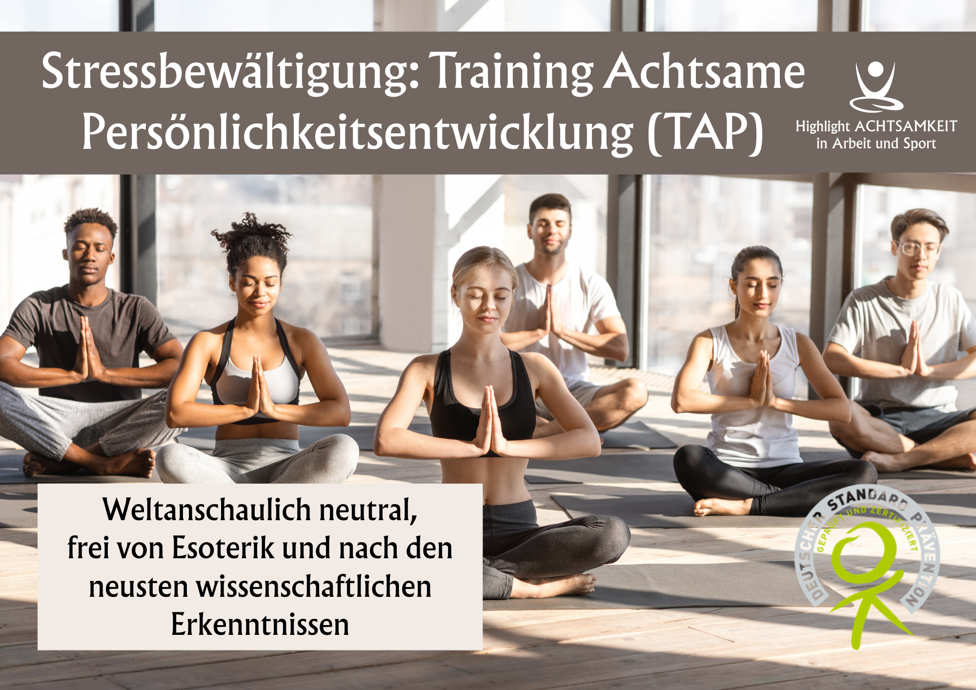 - Das Achtsamkeitstraining ist von der ZPP zertifiziert. Konzept-ID: KO-ST-F79GN6